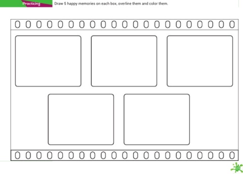 Practicing Draw 5 happy memories on each box, overline them and color them. 105