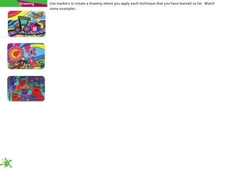 Drawing Use markers to create a drawing where you apply each technique that you have learned so far. Watch some examples. 16