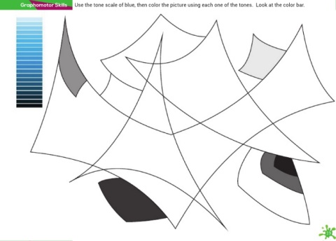 Graphomotor Skills Use the tone scale of blue, then color the picture using each one of the tones. Look at the color bar. 19