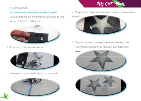 You can watch the video on the platform as a guide. 4. Place the stencil and rub the tip of the cotton swab inside the