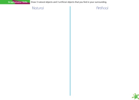 Graphomotor Skills Draw 3 natural objects and 3 artificial objects that you find in your surrounding. Natural Artificial 31