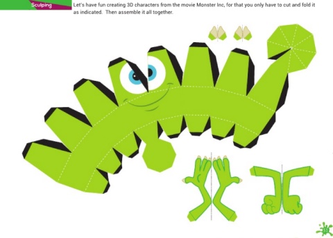 Sculping Let’s have fun creating 3D characters from the movie Monster Inc, for that you only have to cut and fold it as indicated. Then assemble it all together. 51