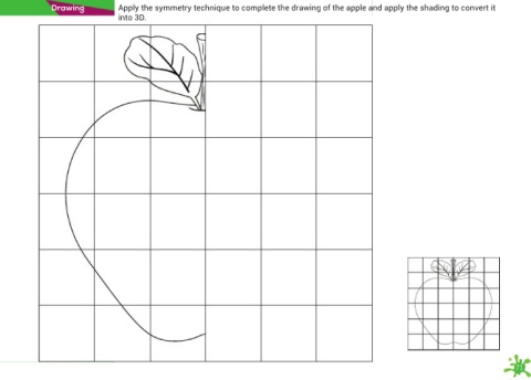 Drawing Apply the symmetry technique to complete the drawing of the apple and apply the shading to convert it into 3D. 71