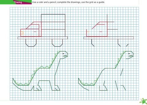 Tracing Use a ruler and a pencil, complete the drawings, use the grid as a guide. 77
